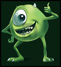 Not-so-scary Mike the monster from the Disney animated movies, says 'hello!'Monsters Inc costumes, Monsters Inc toys and Monsters Inc dvds are all the rage. So here's a free online tutorial on How to Draw Monsters Inc.